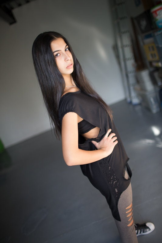 The longline asymmetric sleeveless top made from viscose is all about the details. With a longer back and a unique hole at the front, this piece offers a loose fit and an effortlessly cool attitude. Whether you pair it with leggings, skinny pants, or shorts, it will look fantastic every time, making it an essential addition to your wardrobe.