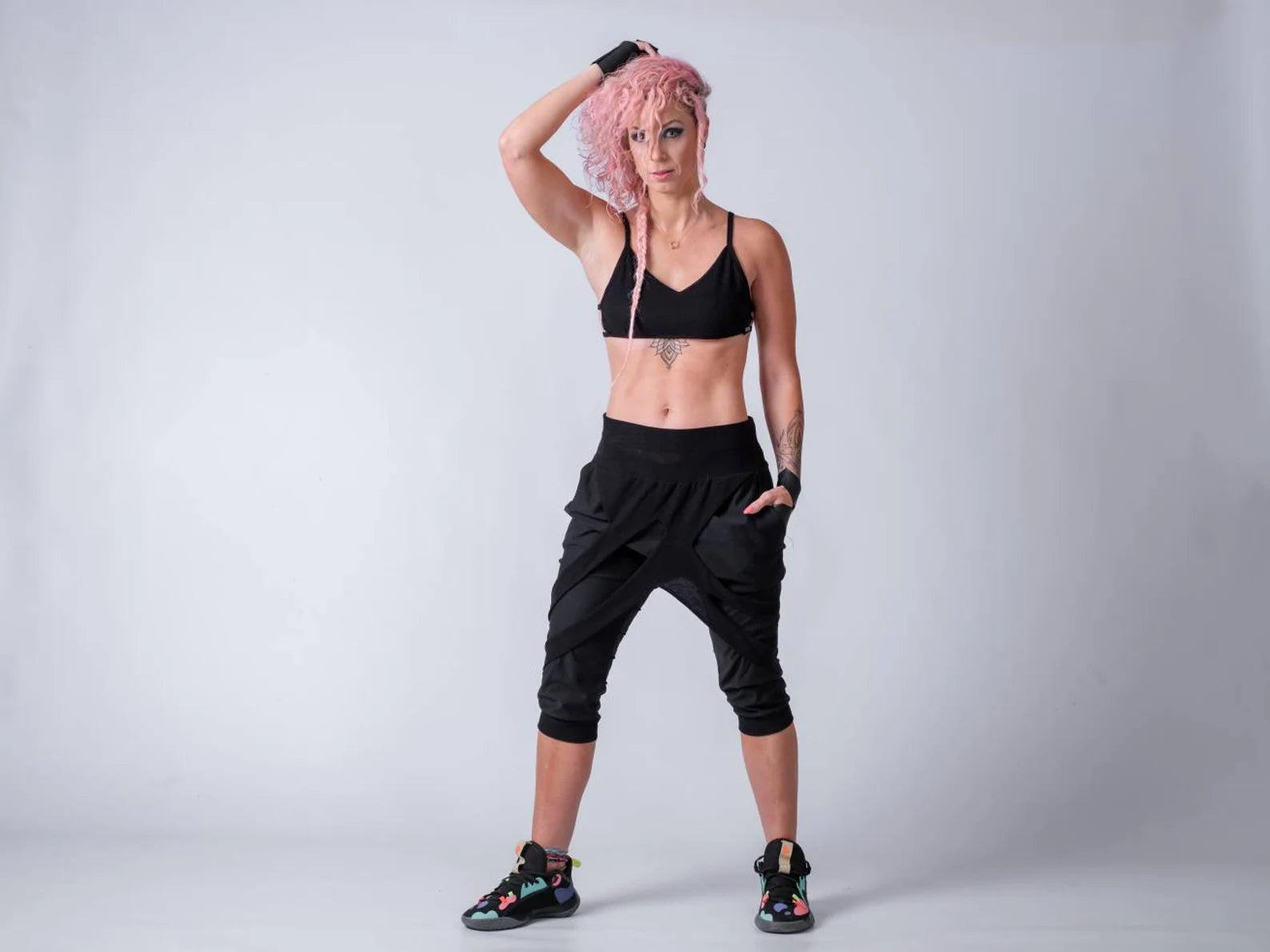 A standout design for this summer! These drop-crotch capri pants are everything you need for the perfect street style this year. Featuring a futuristic overlayed skirt, the crotch is beautifully detailed with stitching that runs all the way down. Made from stretchy cotton with athletic jersey accents on the skirt, belt, and leg cuffs, these pants offer a relaxed fit, pockets, and a flattering back fit. Pair them with something basic on top for an effortlessly cool, badass look!
