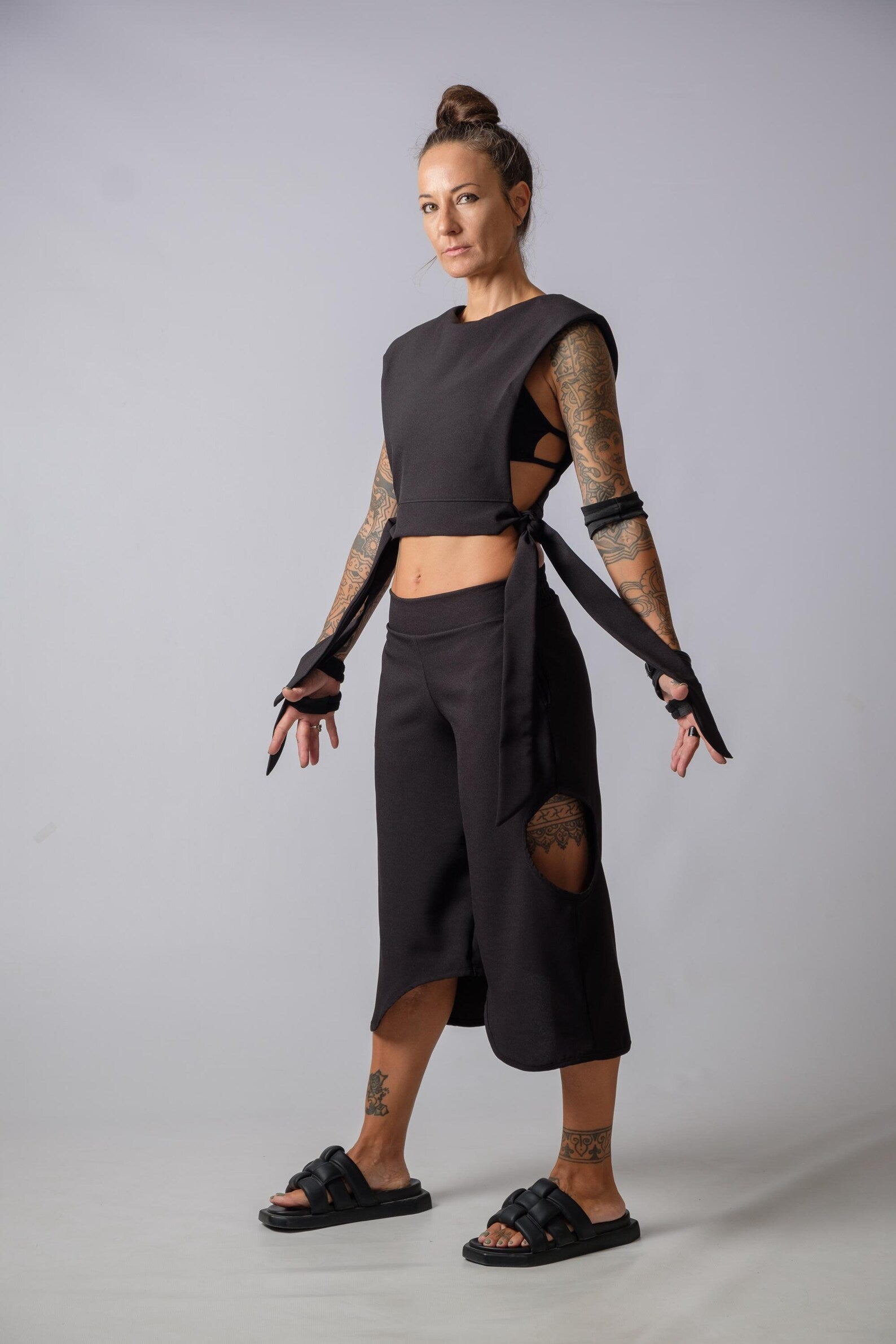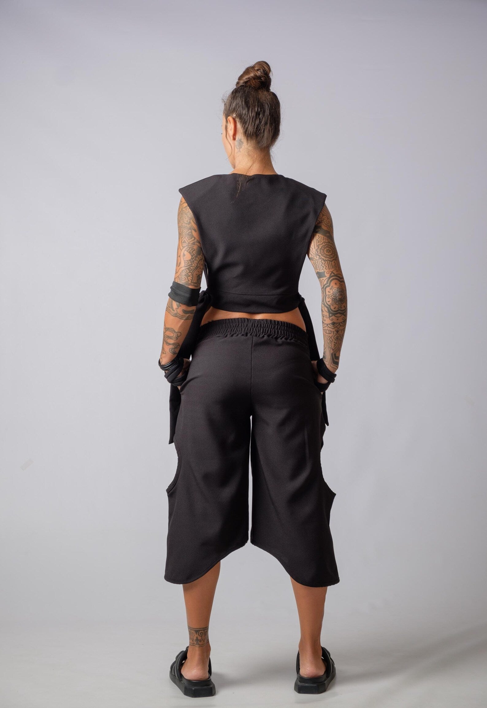 Get ready for the future with our Futuristic Black Loose Pants! These androgynous, knee-length shorts are designed for both comfort and style, making them perfect for plus-size fashion. Whether you're hitting up festivals, attending Burning Man, or rocking them for everyday wear, these extravagant shorts add a daring, edgy look to any outfit.