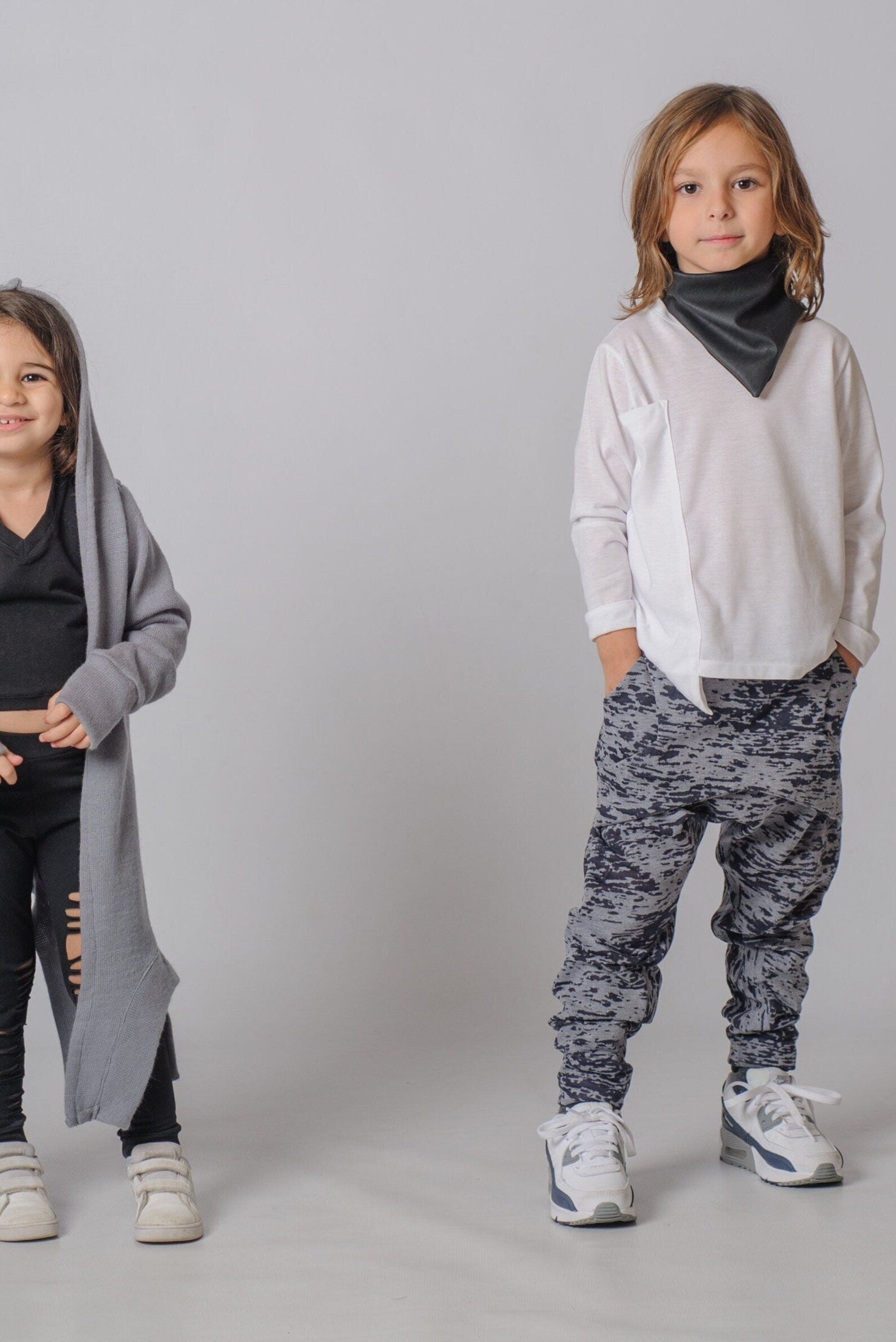 Introducing our Kids Drop Crotch Pants – the perfect mix of style and comfort for your little ones! These baggy, casual harem pants feature a relaxed drop crotch design with pockets and an overlayed front, making them both fashionable and functional. The elastic waistband ensures a comfortable fit, while the soft cotton fabric with a military-inspired look adds a unique touch. Ready for playtime? With these pants, it’s always time to have fun!