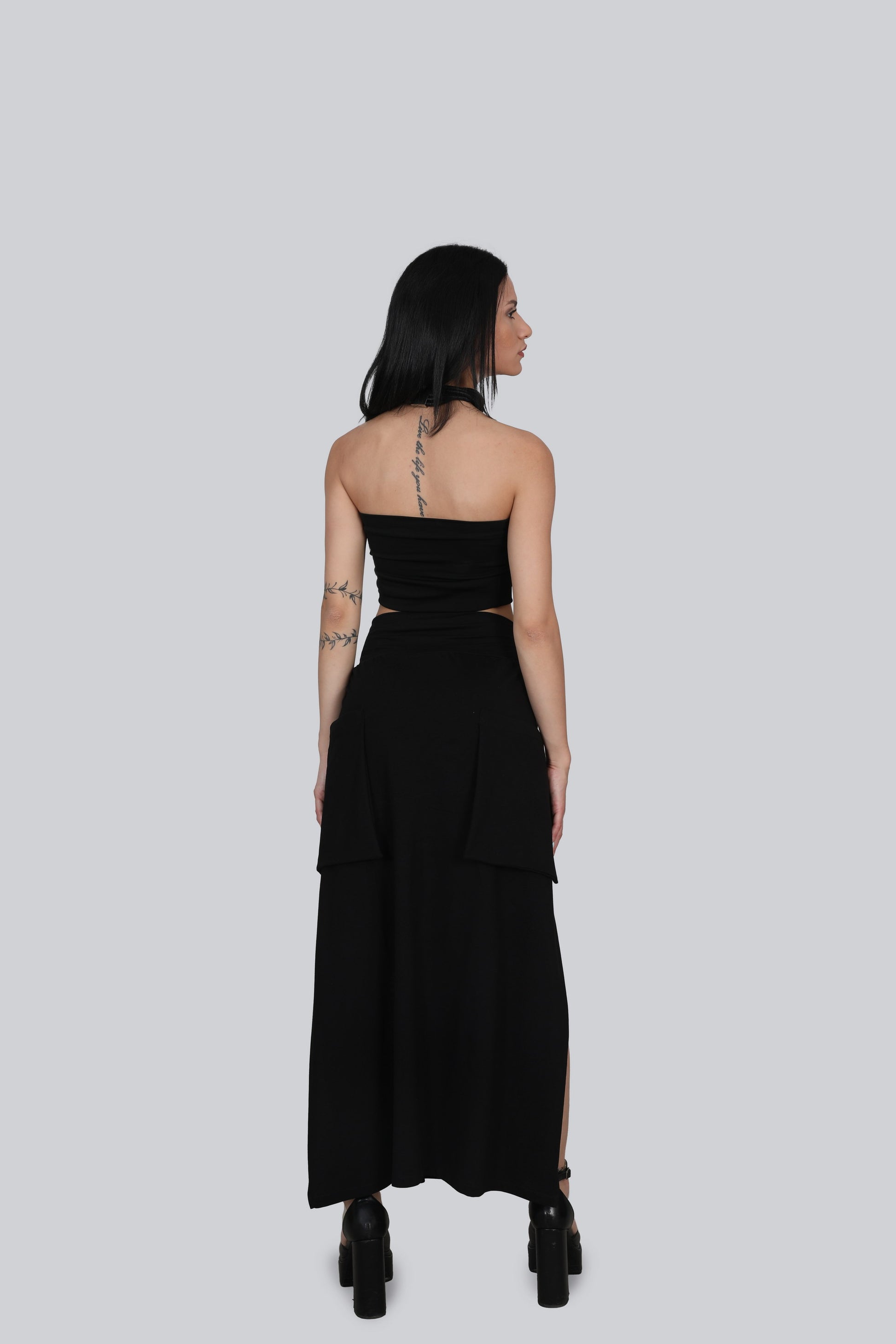 Strength in softness. The Soft Armour Skirt is a high-waisted maxi skirt crafted from ultra-soft cotton jersey that moves with you, not against you. Featuring a bold high front split, deep functional pockets, and a sculpting waistband, it blends utility with sensuality — all without sacrificing comfort.