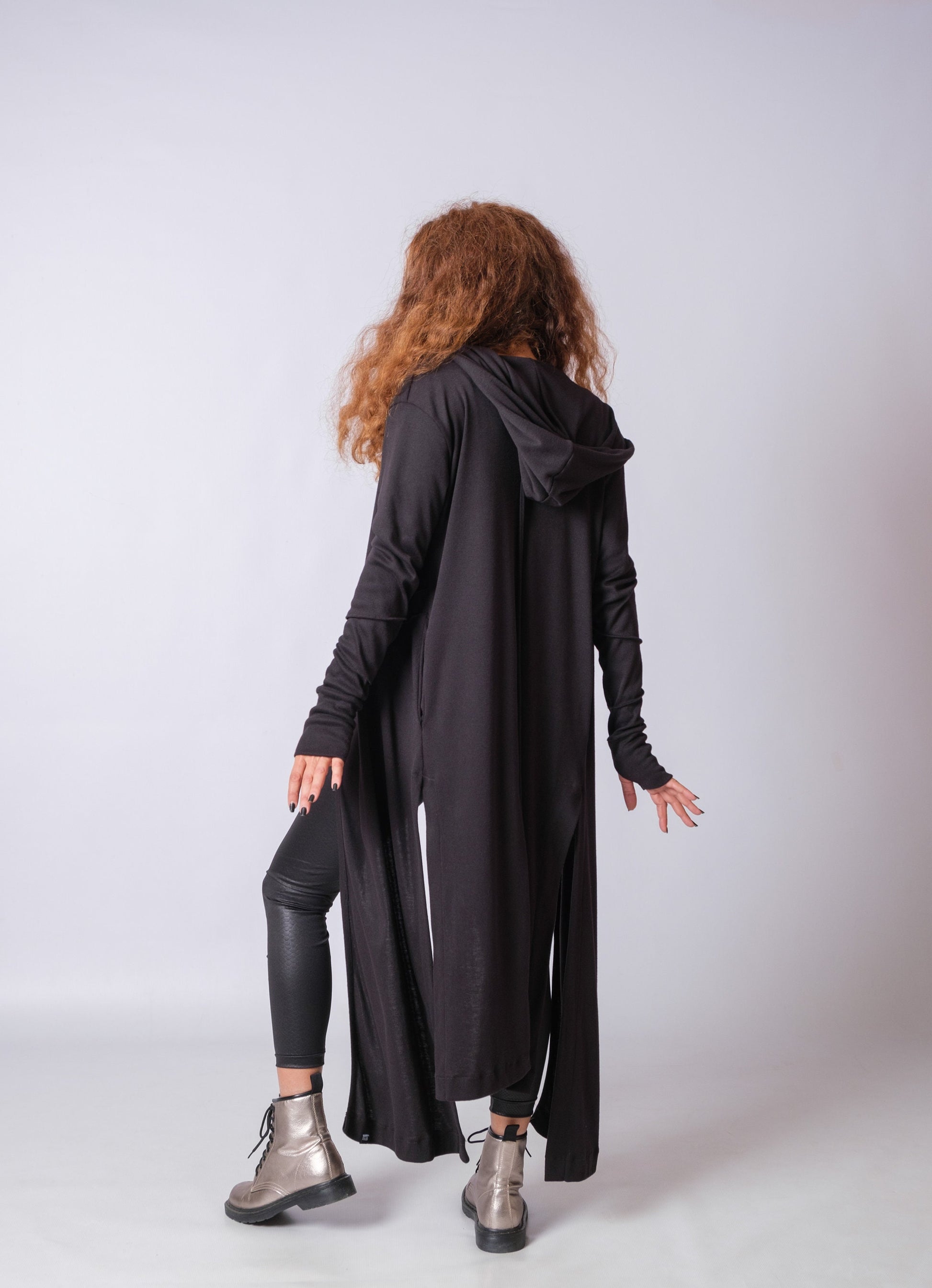 Black Cyberpunk Long Cardigan With Thumb Holes
