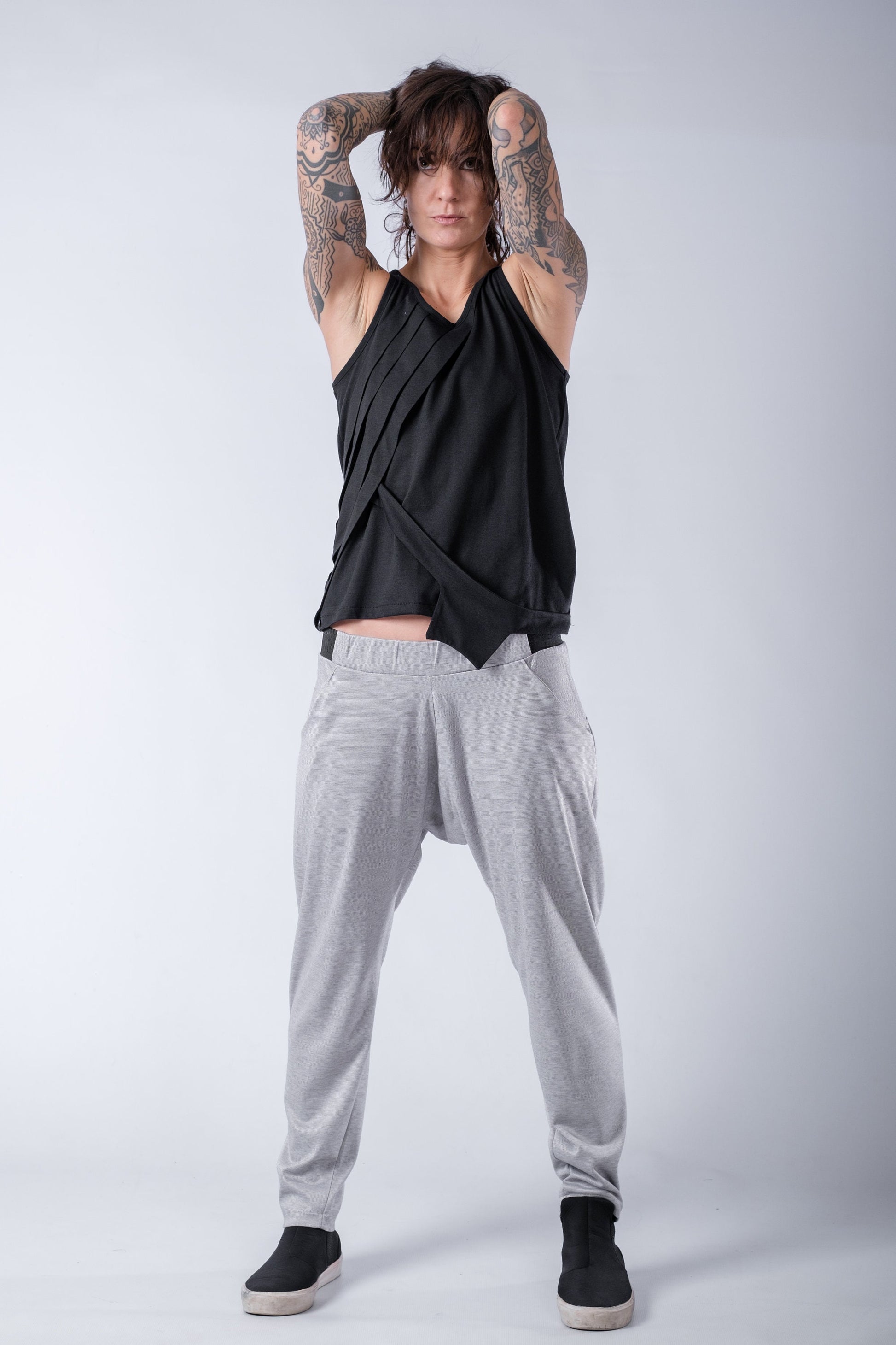 These Loose Fit Drop-Crotch Pants are a personal favorite for anyone who loves effortless street style with a touch of edge. Designed with a low to mid-waist fit, they feature an elastic waistband that sits comfortably while showing a cool, exposed elastic detail on both sides. The drop-crotch design offers a relaxed, urban vibe, while the added pockets bring both functionality and style.