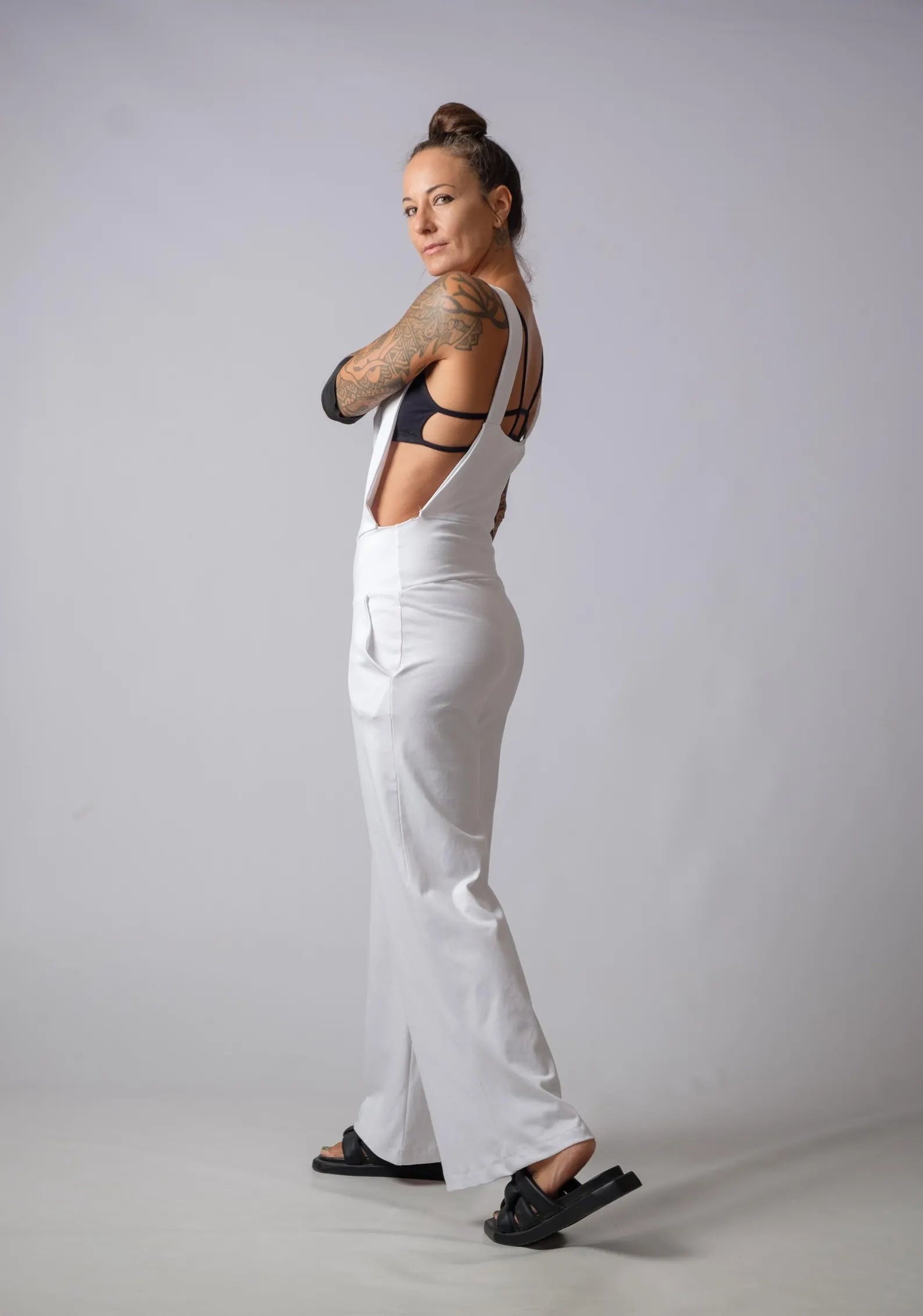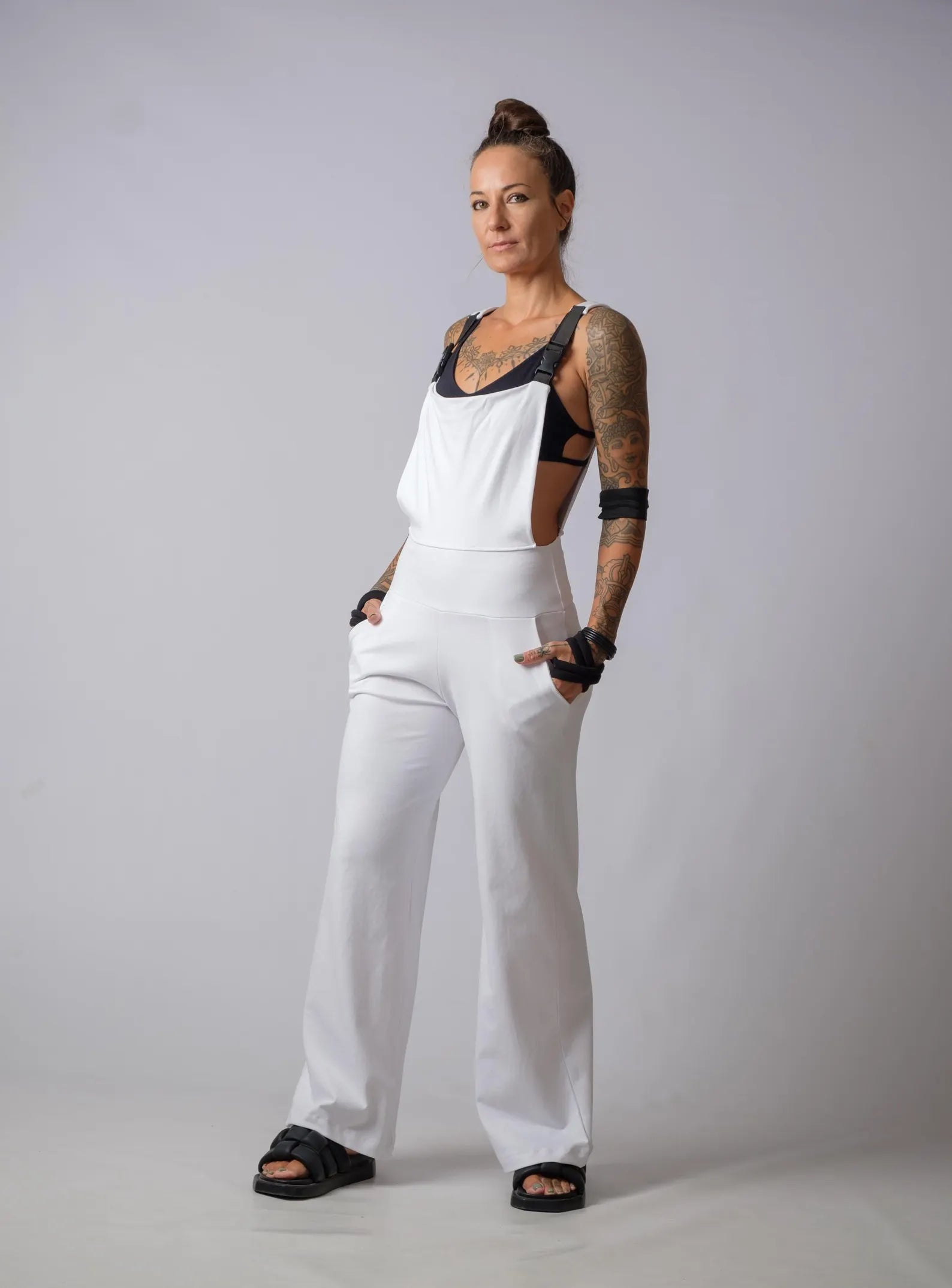 Get ready to make a bold statement with our Cyberpunk Cotton Sleeveless Jumpsuit! Designed with comfort and style in mind, this summer white, gothic-inspired piece features soft, stretchy cotton for a comfortable fit and sexy open sides for an edgy twist. The padded and stitched straps add a unique touch, while the black plastic clip closure completes the look with a futuristic vibe. With its extravagant straight-leg design, this avant-garde jumpsuit is perfect for turning heads at any occasion. A must-have for any fashion lover who wants to stand out!