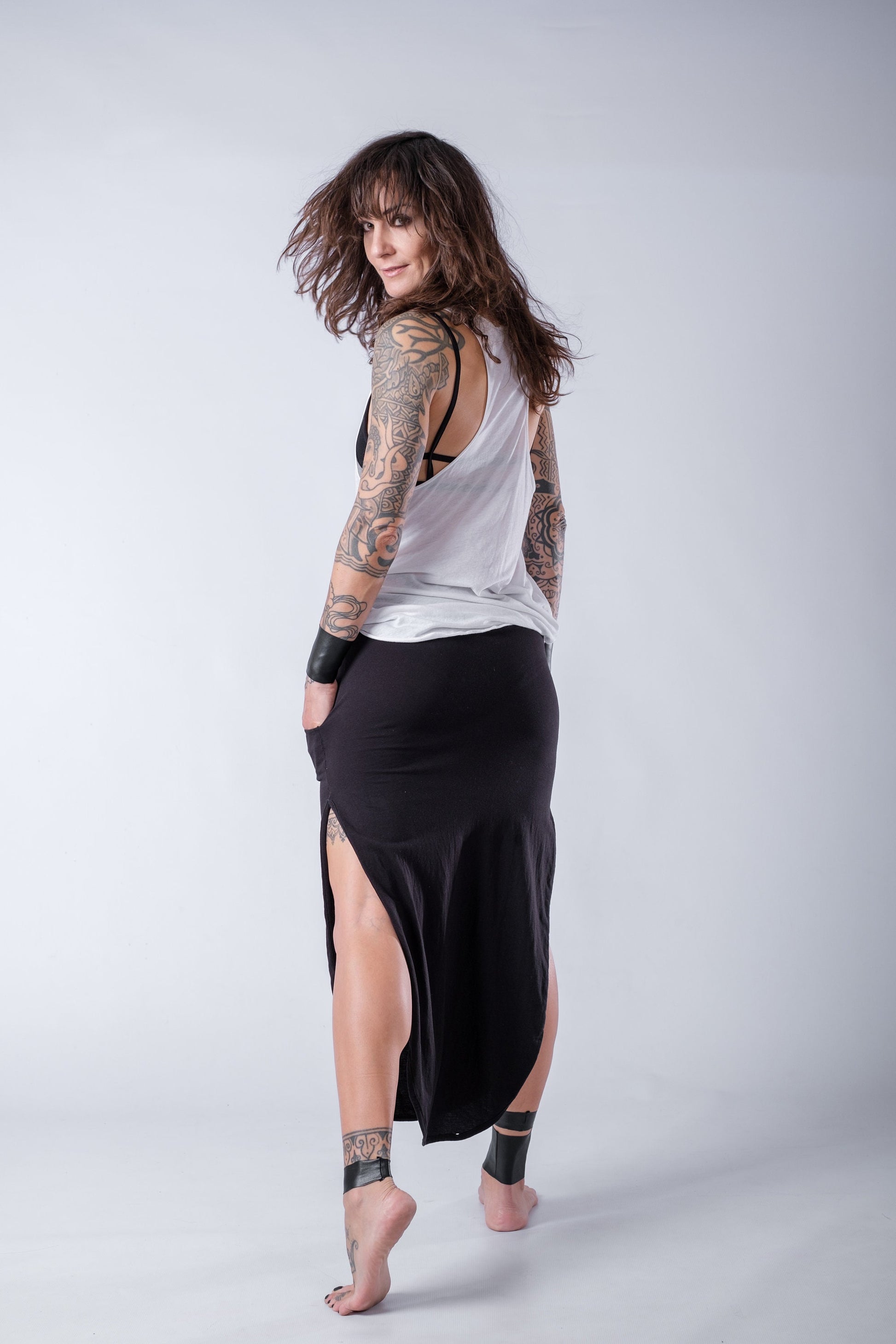 This bold and dynamic skirt is a must-have for every confident woman. Crafted from stretchy cotton, it features an elastic waistband with our signature detail and biker-inspired padded stitching. The double thigh-high side splits give it a daring edge, while the comfortable fit ensures you’ll love wearing it all summer long.