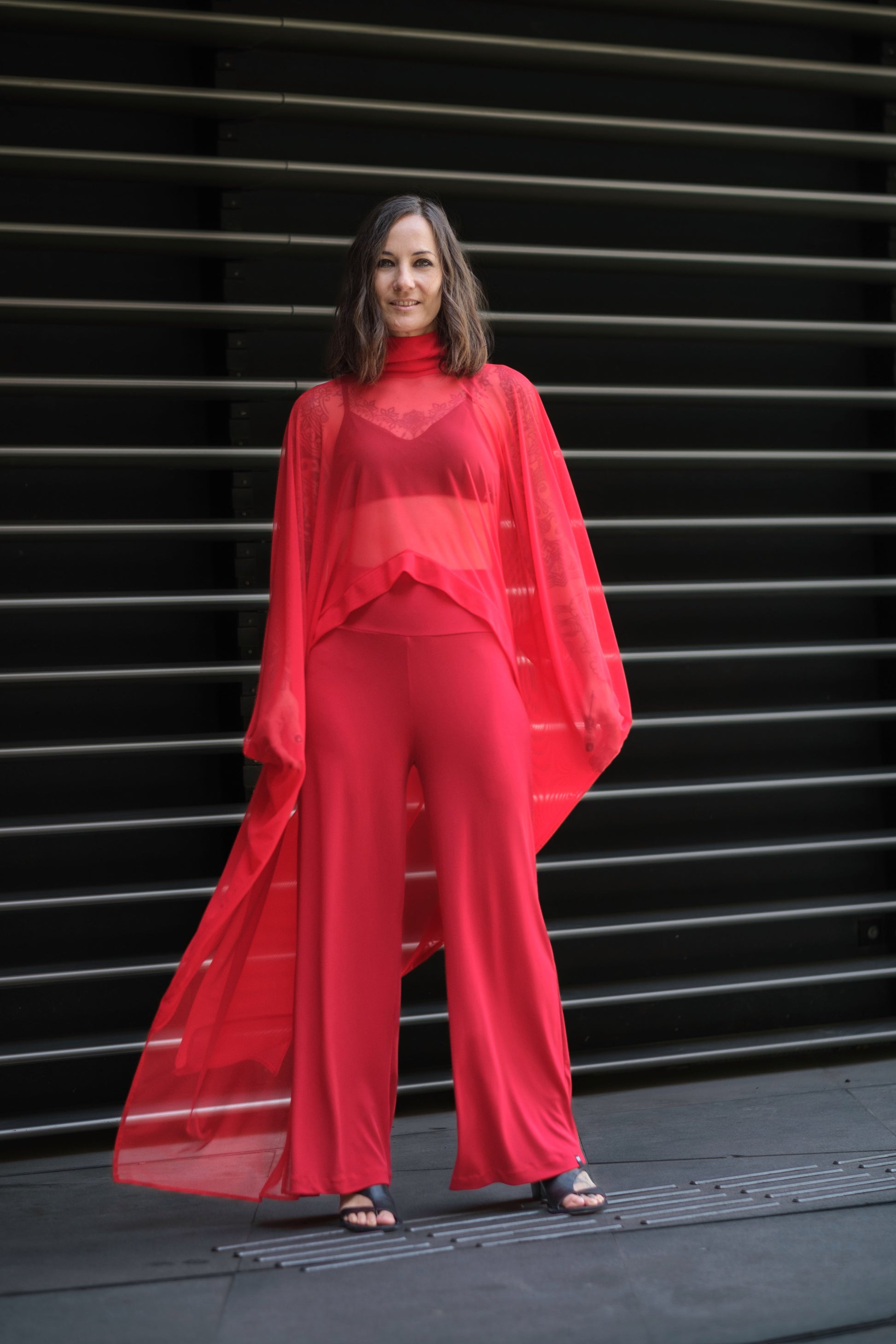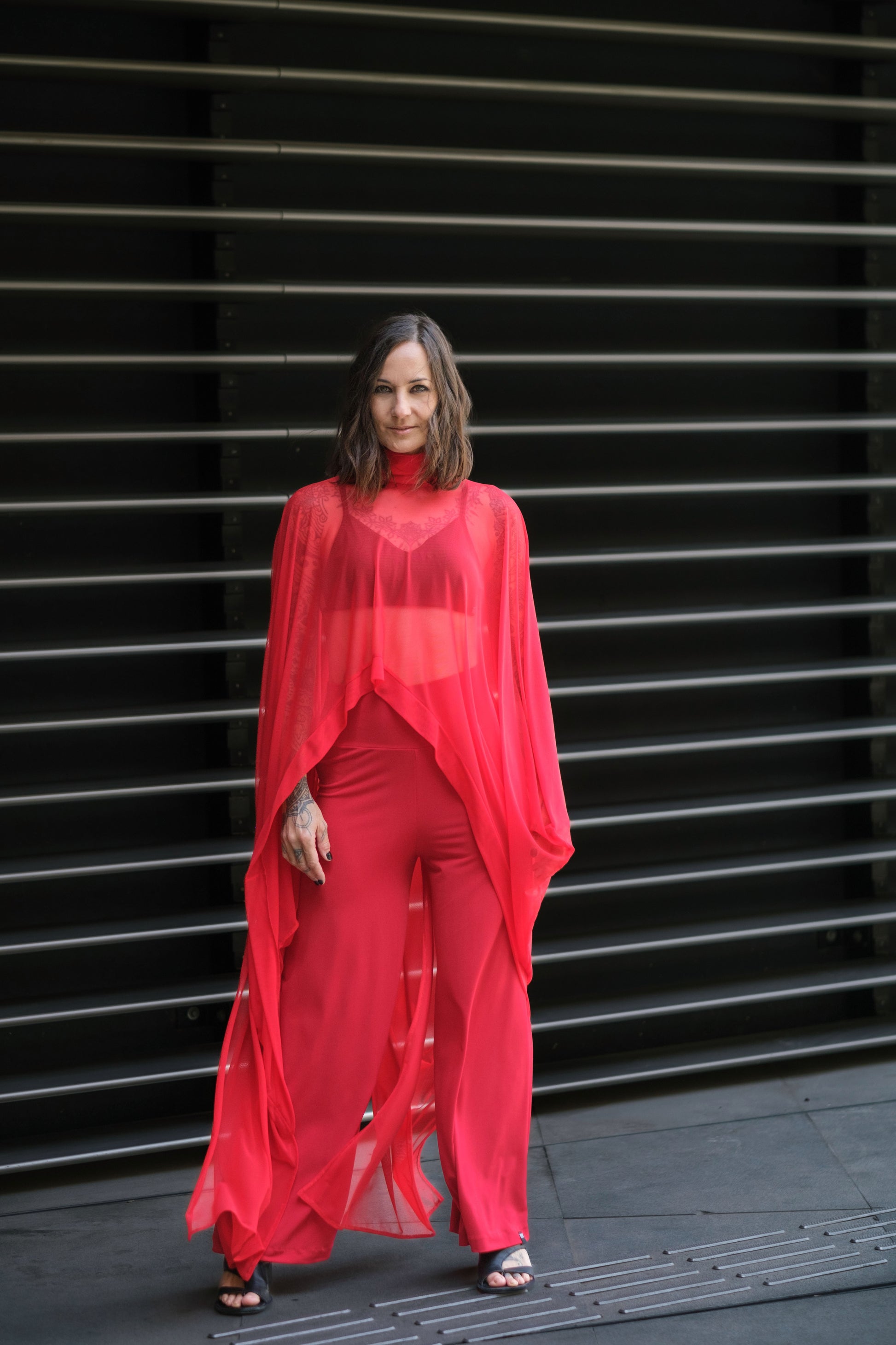 Extravagant Red Sheer Cape Tunic