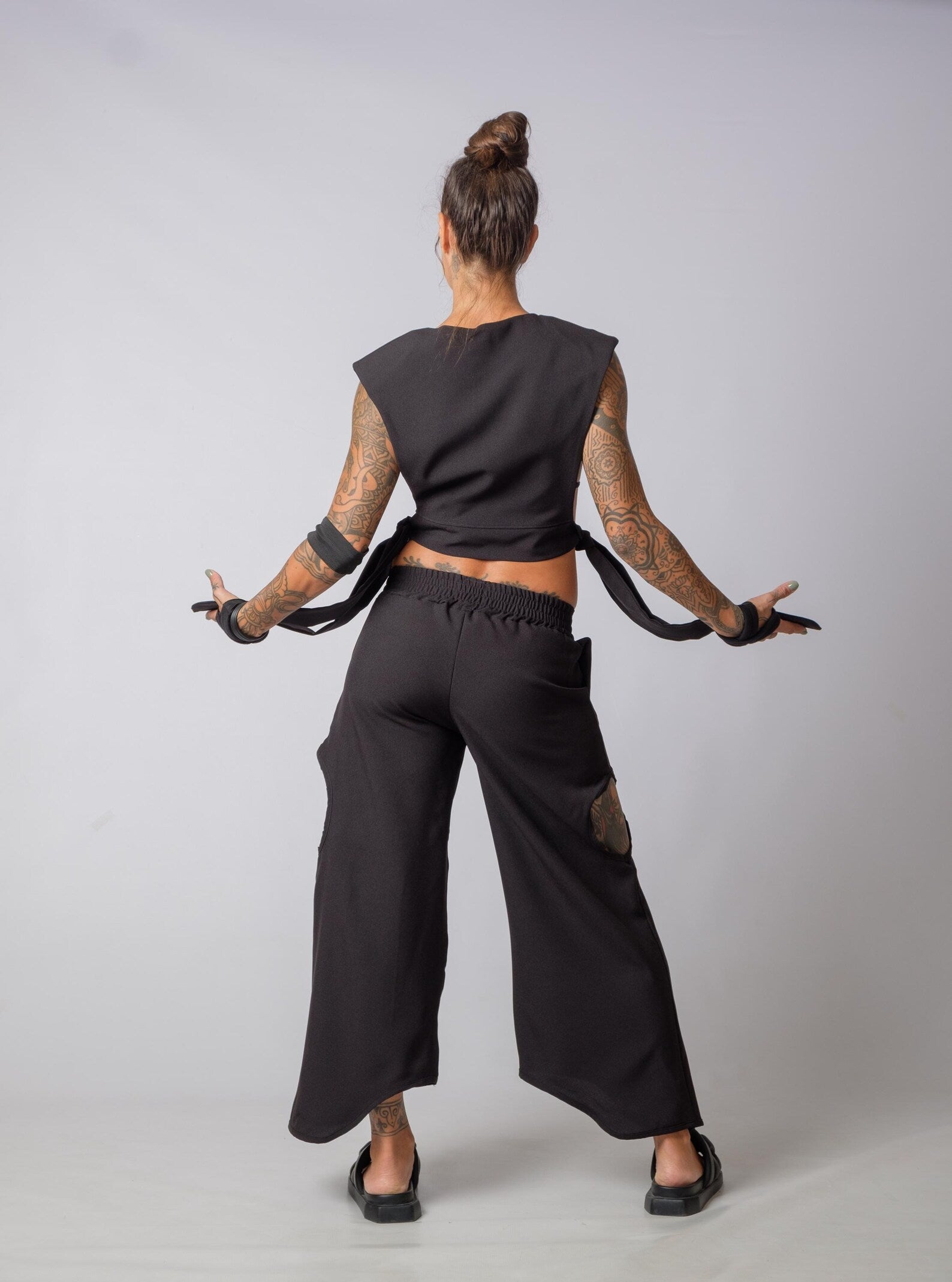 Step into the future with our Futuristic Shoulder Pad Top! This boxy crop top features bold side ties and an edgy sleeveless design, perfect for making a statement. With open sides and a muscle tee style, this avant-garde vest is ideal for summer or adding a cyberpunk edge to your wardrobe.