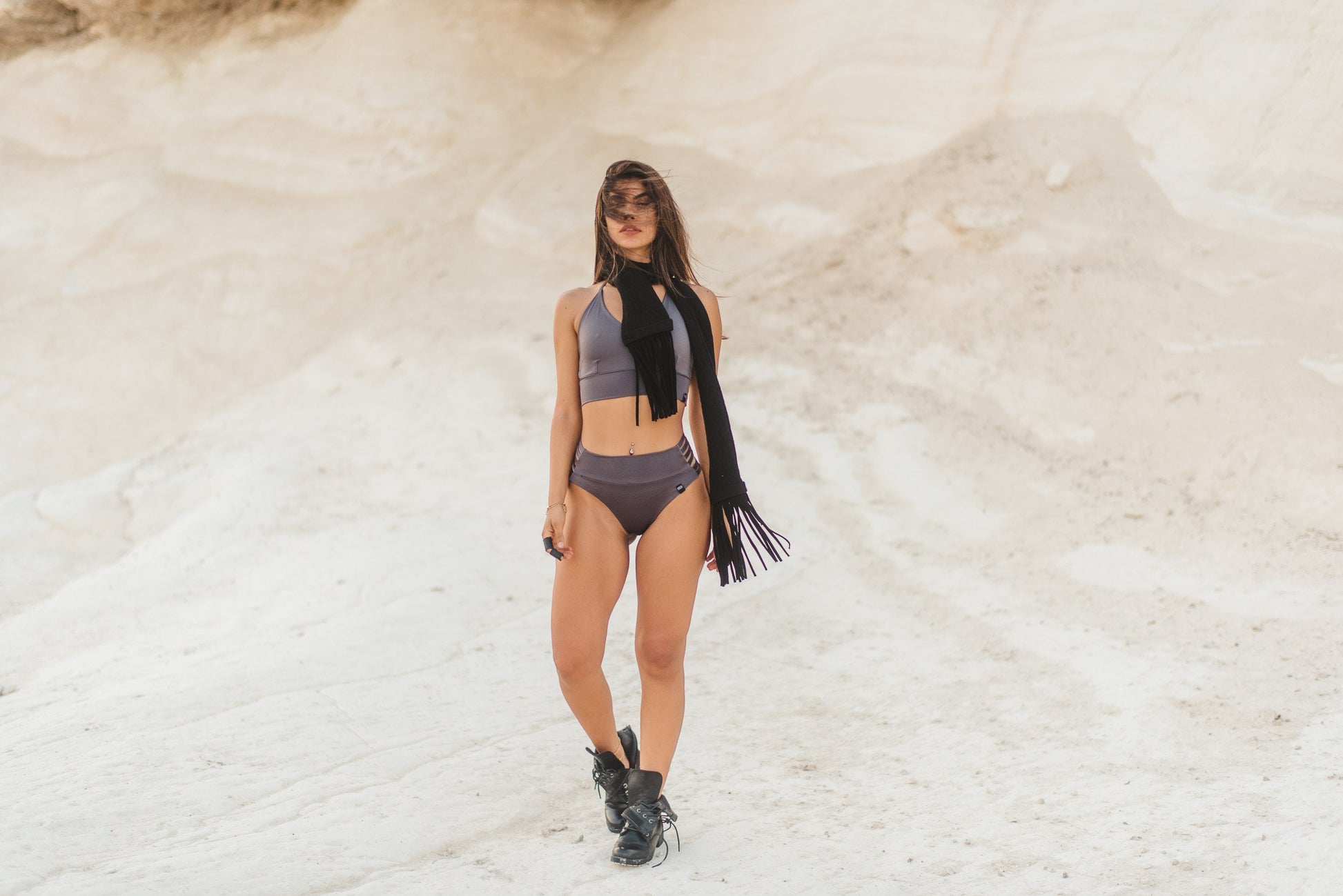 Unleash your confidence with this amazing bikini, a perfect blend of sexy, comfy, athletic, and classy. The high-waist brief bottom features stylish straps on both sides, offering a balance of sex appeal and comfort. The top is designed with an athletic look, equipped with matching straps at the back and adjustable halter straps for the perfect fit.