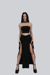 Strength in softness. The Soft Armour Skirt is a high-waisted maxi skirt crafted from ultra-soft cotton jersey that moves with you, not against you. Featuring a bold high front split, deep functional pockets, and a sculpting waistband, it blends utility with sensuality — all without sacrificing comfort.