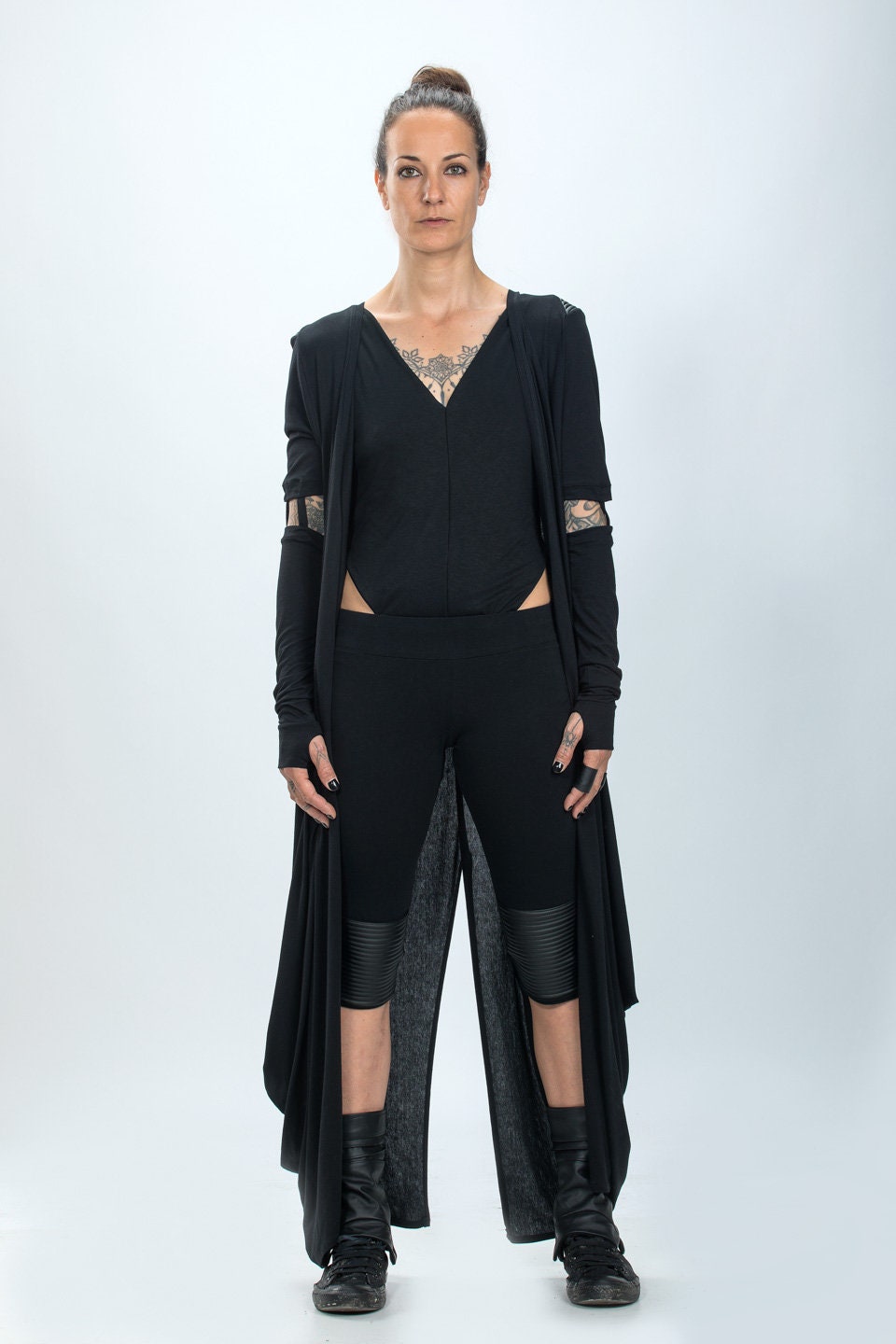 Introducing our New Extra Long Asymmetric Cardigan – a captivating blend of comfort and edge that transcends the ordinary. This Black Draped Cotton Jacket is not just a cardigan; it’s a statement piece designed for those who embrace casual sophistication with a touch of Cyberpunk flair.
