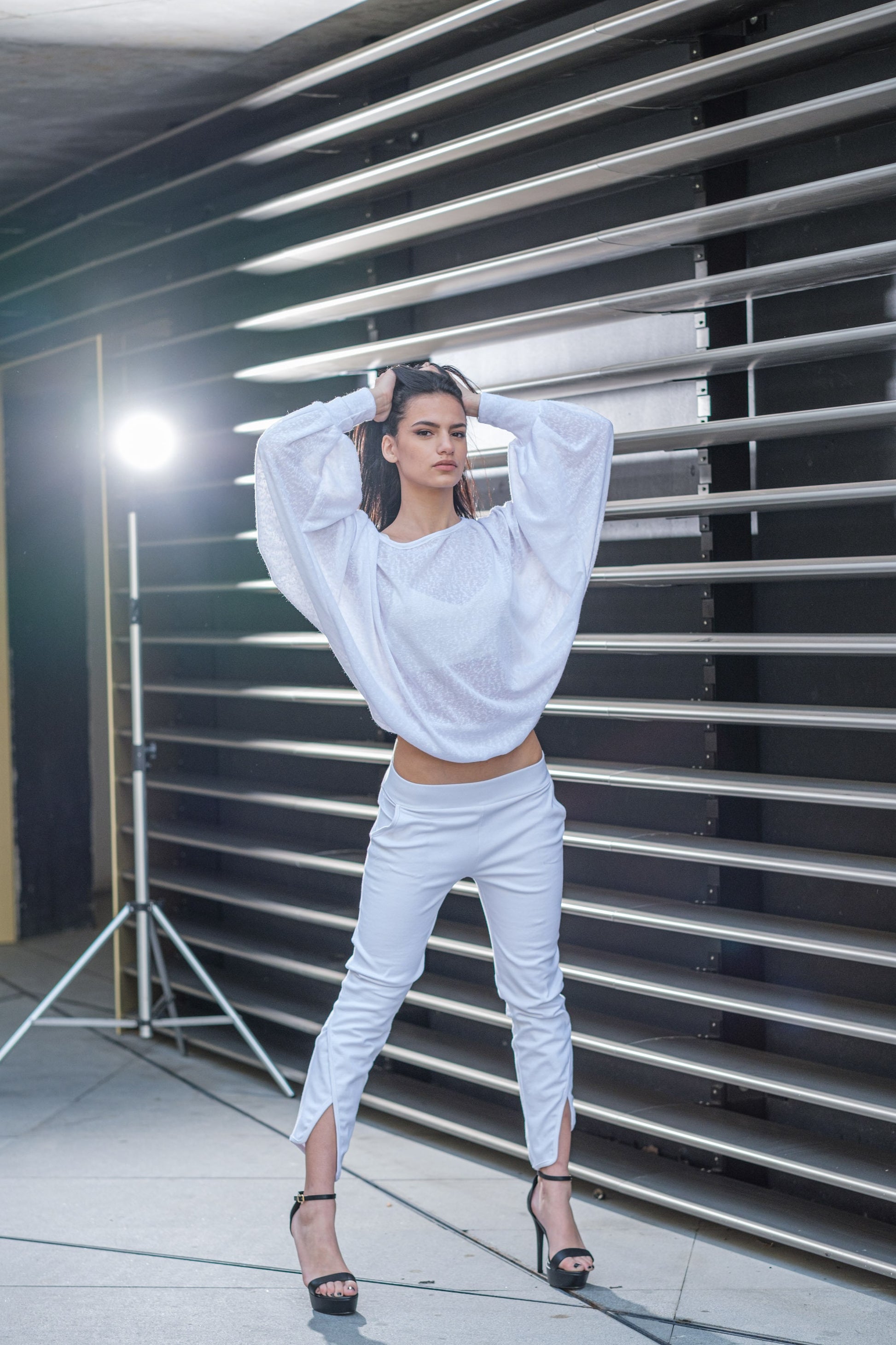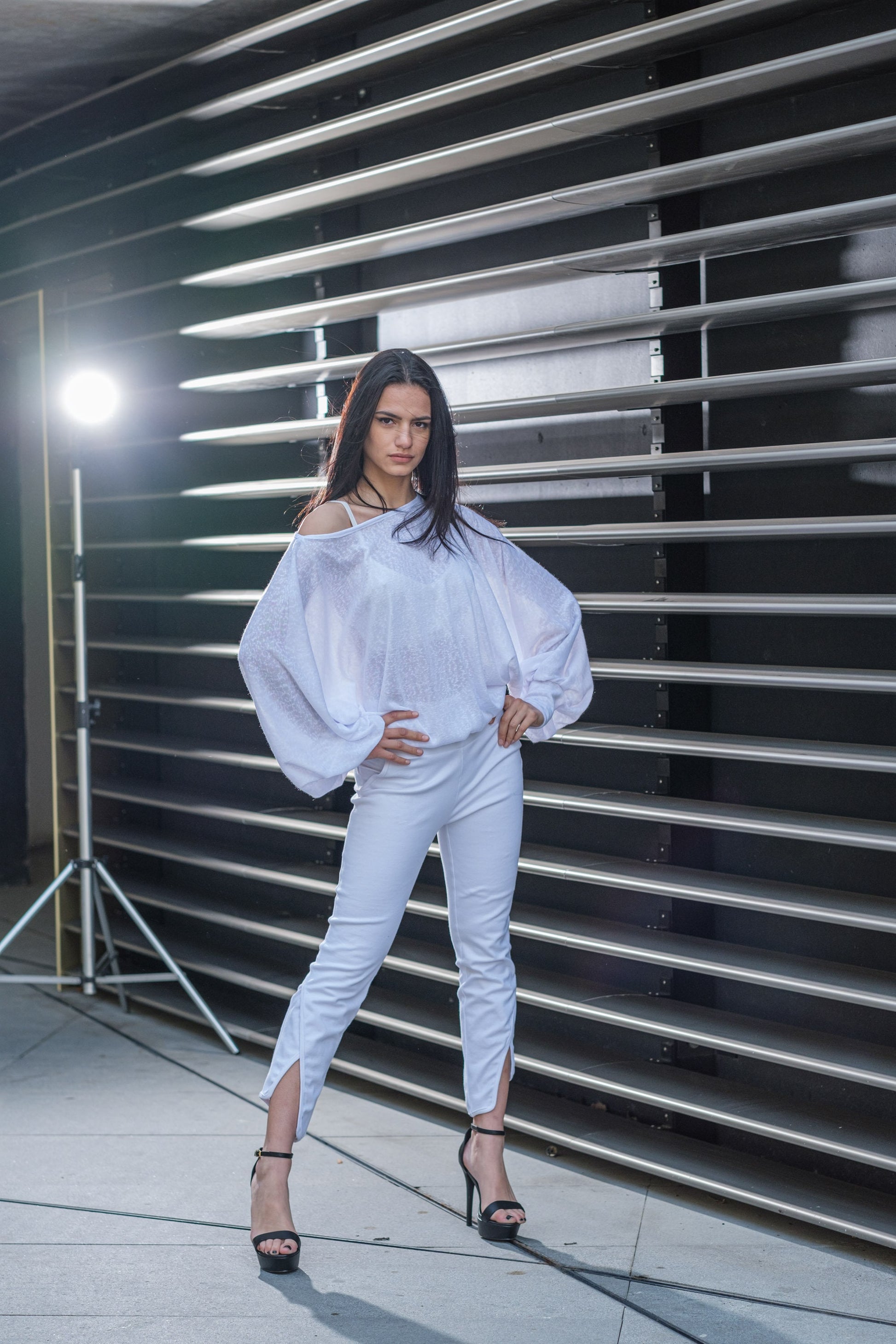 Our Off-Shoulder Elegant Crop Top is the epitome of simplicity meets style. Crafted from a light knitted elastic viscose blend, this top is both comfortable and chic. The loose fit drapes beautifully, while the off-shoulder design and large, cuffed sleeves add a touch of drama and elegance. Perfect for pairing with skinny pants, leggings, heels, or flats, this versatile piece offers a casual yet edgy look for any occasion.