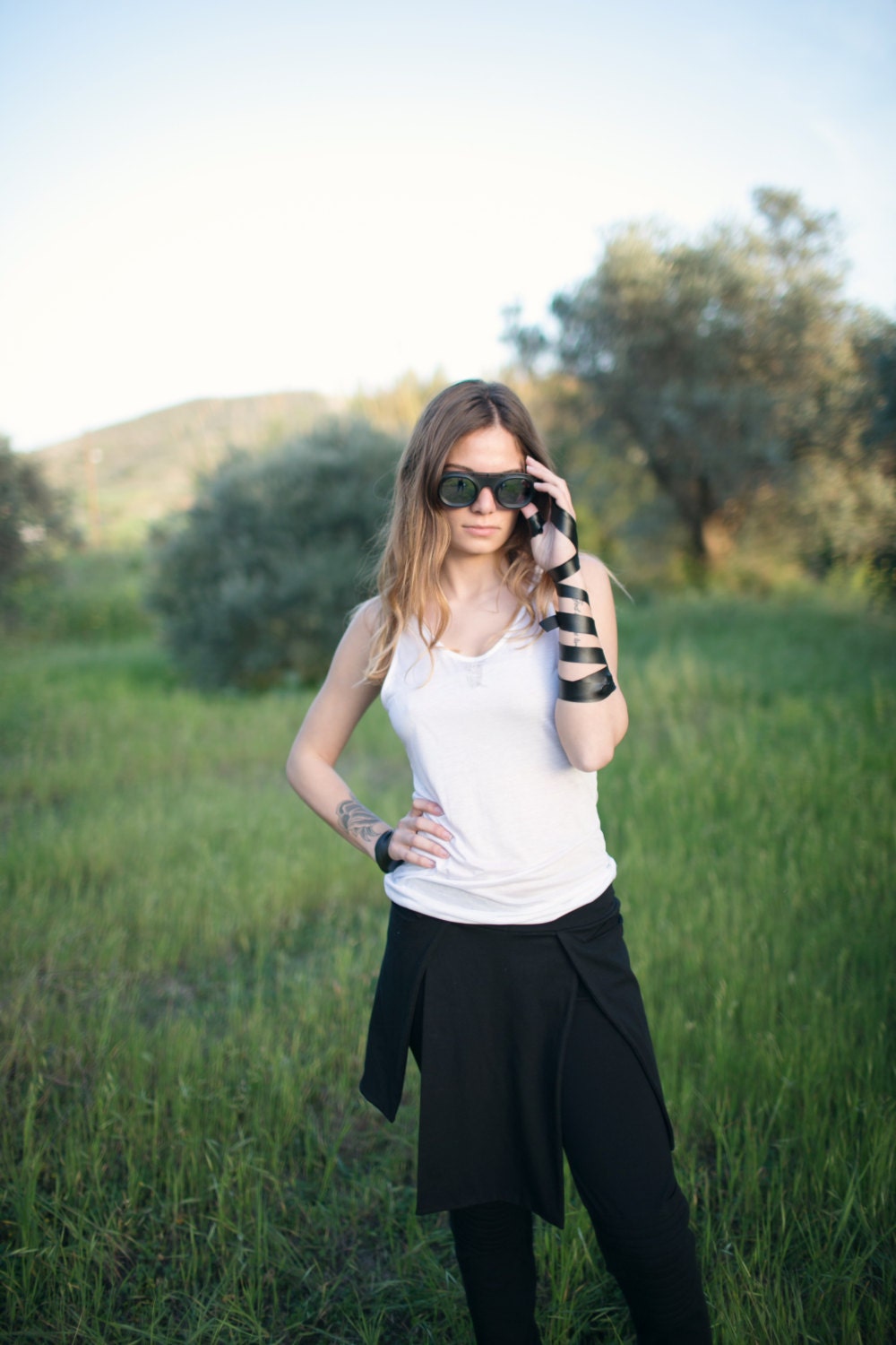 A truly unique design, these relaxed fit straight pants come with an elastic waistband for ultimate comfort. The overlay skirt with a geometric shape elevates this look to the next level, giving you a chic, fashion-forward vibe. Pair them with a simple, basic top and add a bracelet of your choice for an effortlessly stylish street look. This easy-to-wear, modern design will become a staple in your wardrobe!