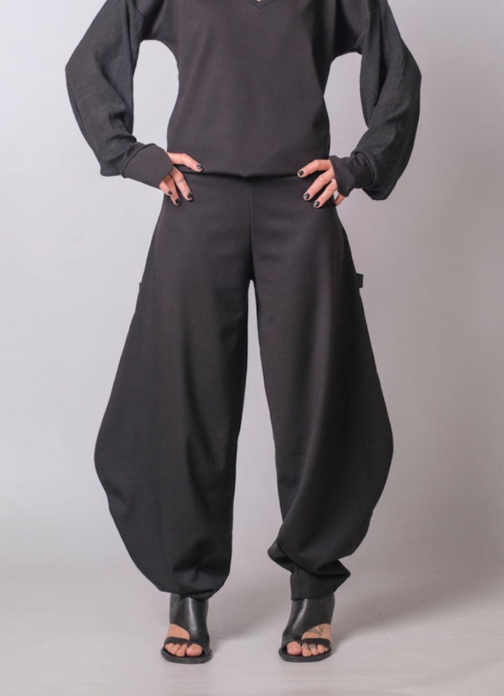The Soft Rebellion Balloon Flow Pants are designed to move like air while still feeling anchored. Their ballooned silhouette creates a sculptural shape that flows with the body, offering comfort without collapse.