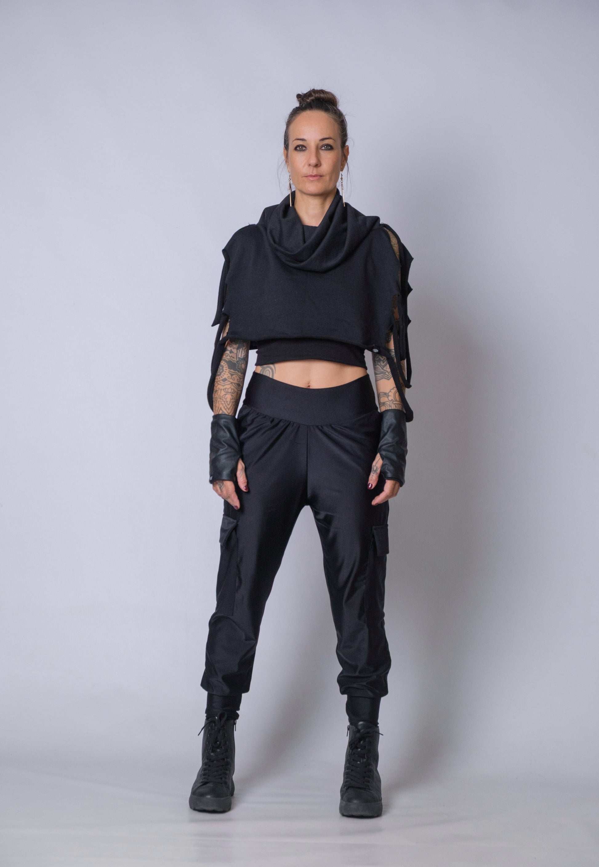 The Nexus Capri Pants merge comfort and structure with a futuristic edge — mid-rise with a wide waistband, deep pockets, and tapered cropped legs that hit just above the ankle.
