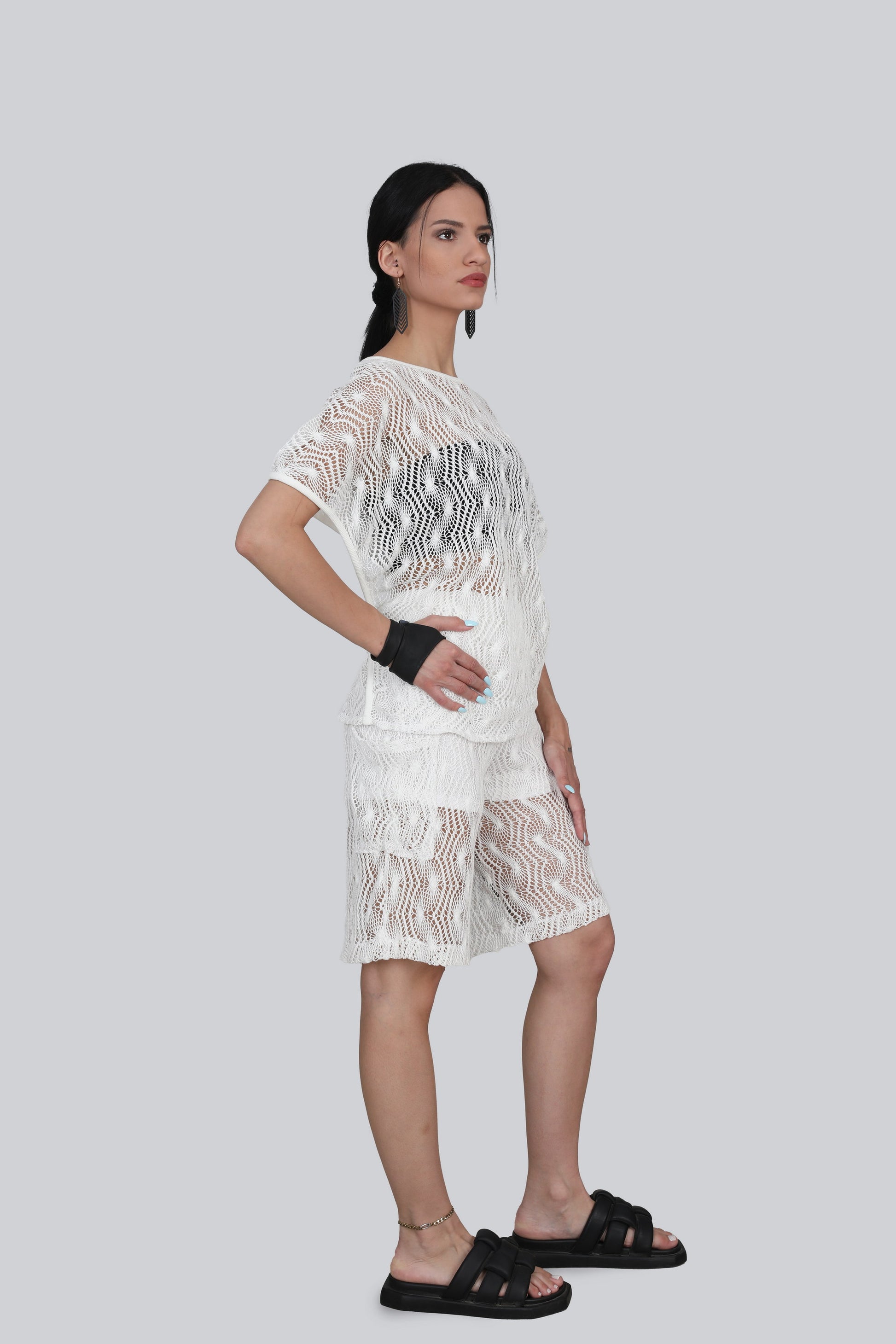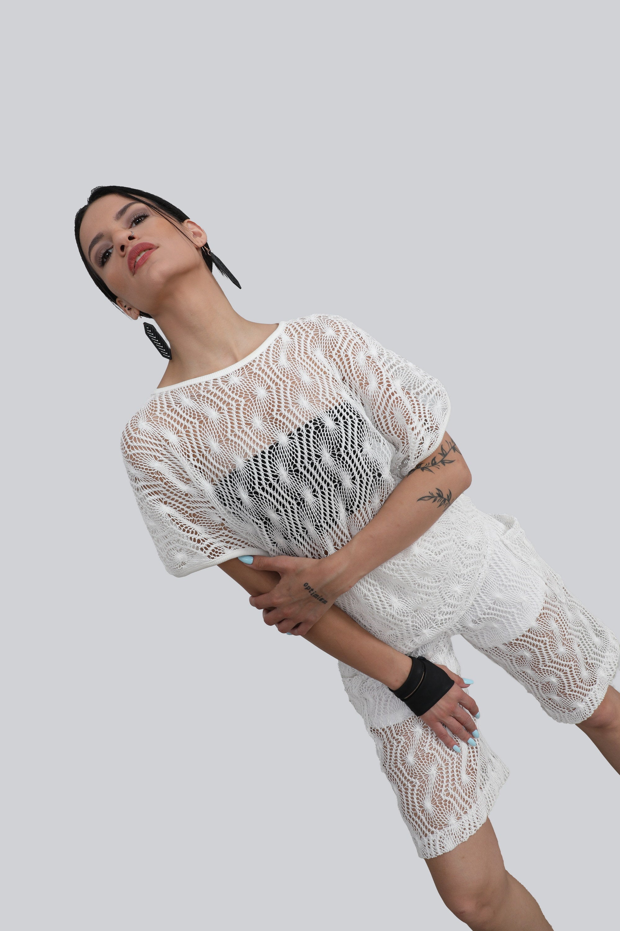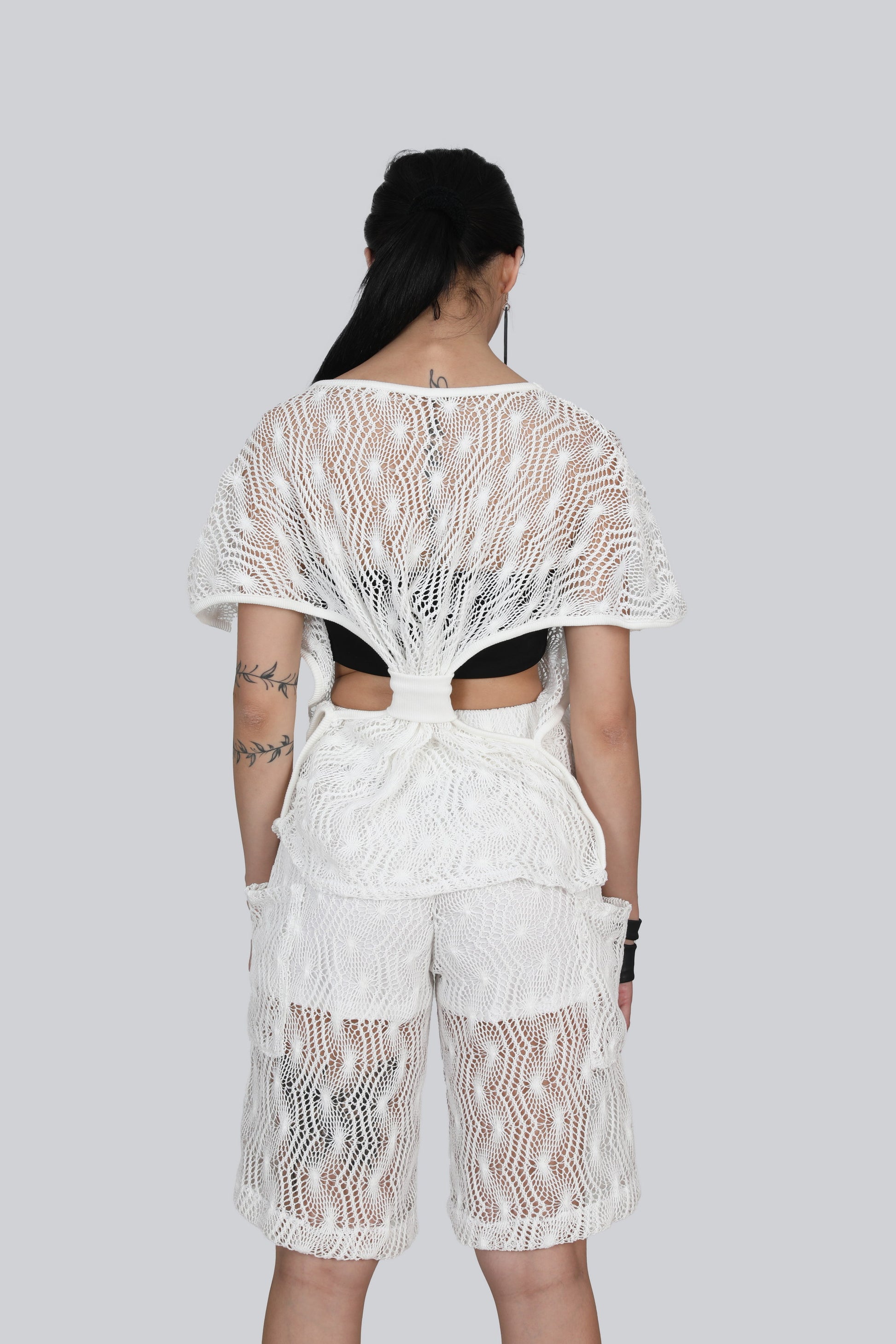 Elevate your rebellion with the Halo Wing Set, a two-piece fusion of utility and grace. Featuring off-white cargo-style Bermuda pants with a stretchy elastic waistband for comfort and effortless fit, paired with a delicate off-the-shoulder butterfly top—backless for a daring, ethereal finish.
