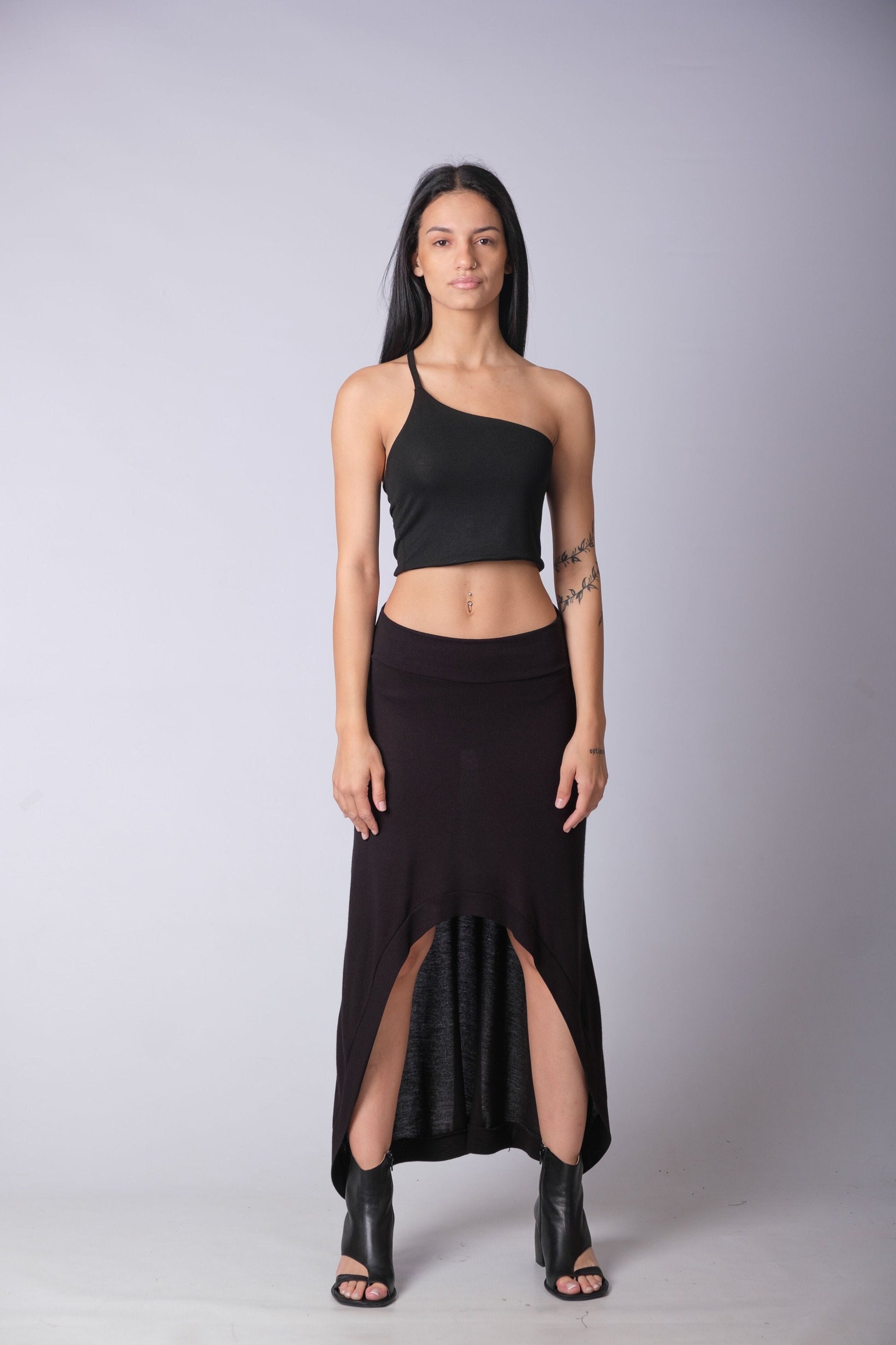 Introducing our Women's Black High Waisted Soft Heavy Cotton Skirt – the perfect blend of comfort, style, and sophistication. Crafted from soft, heavy cotton with an elastic waistband, this skirt offers a flattering, high-waisted fit that's as sexy as it is dynamic. The asymmetrical design adds a modern, edgy touch that makes it stand out in any wardrobe.