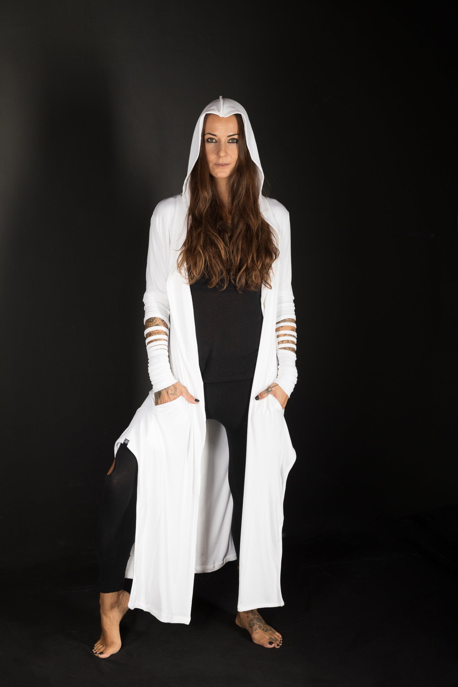 Hooded light cotton lycra jacket. Urban and basic design , a jewel jacket for any occasion ! Asymmetric with pockets and slit sleeves. No closure which makes the material flow better and a v back with hood. It fits just the way it should. One of my favorite designs for autumn and winter as you can wear it under a short jacket!