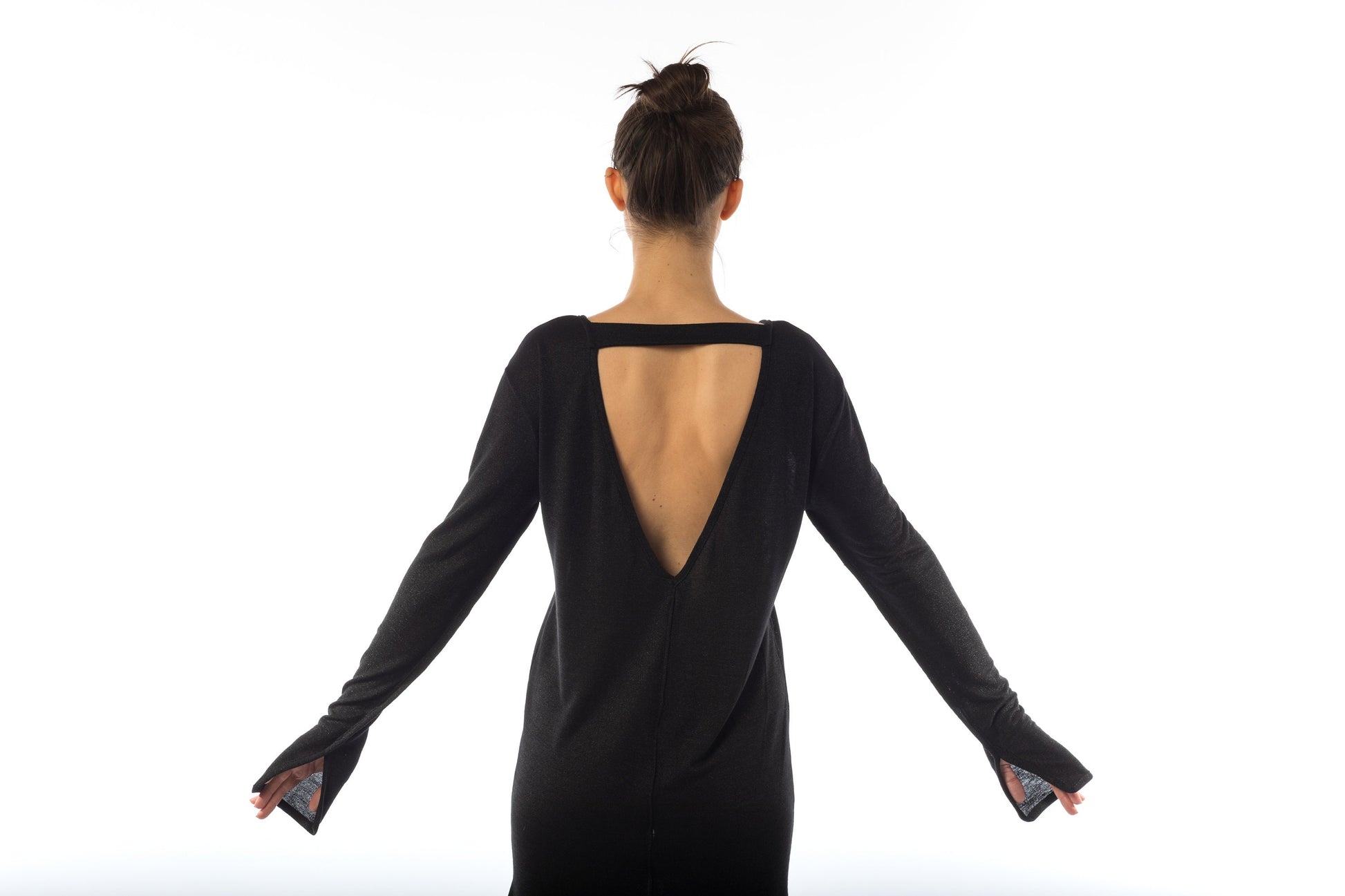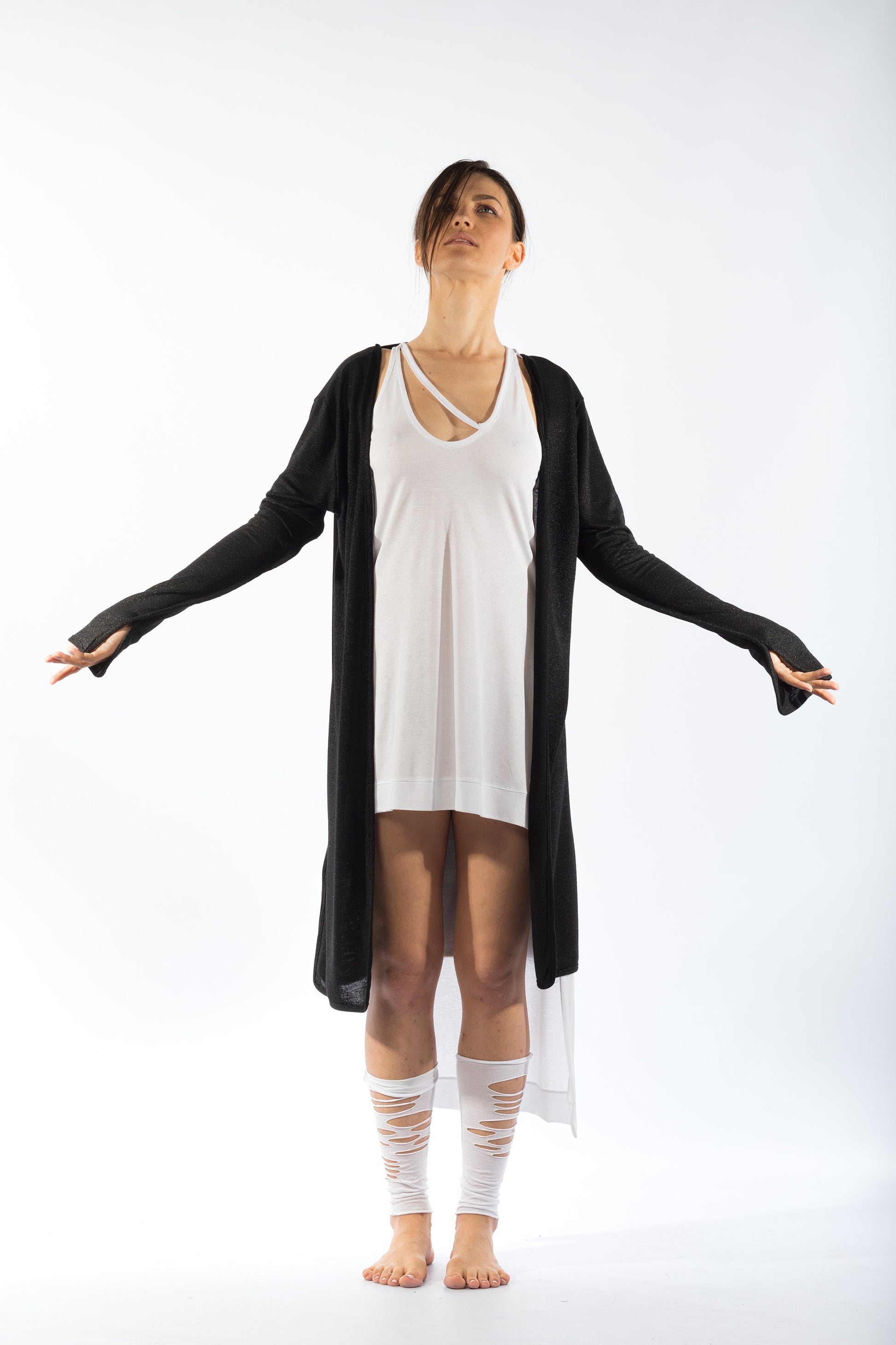 This Oversize Long Jacket is designed for those who appreciate the beauty of simplicity and the allure of a relaxed fit. The Black Backless Tunic adds a touch of sophistication, offering a tasteful hint of allure to your ensemble.