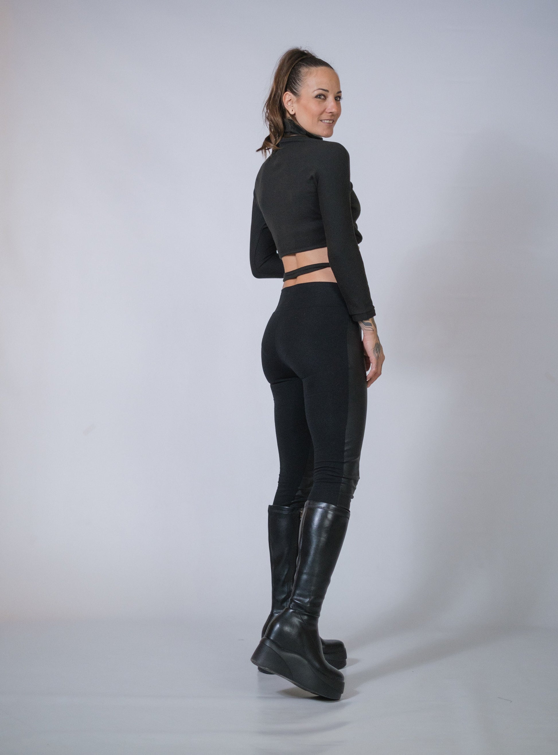 If you are looking for a top to pair with your high waisted pants or skirts this is definitely the one ! Love the turtleneck idea in a cropped top , and I find the straps very sexy and stylish ! Made of stretchy cotton the fit comes easy and use the straps that start from the front to play and create your own unique style !