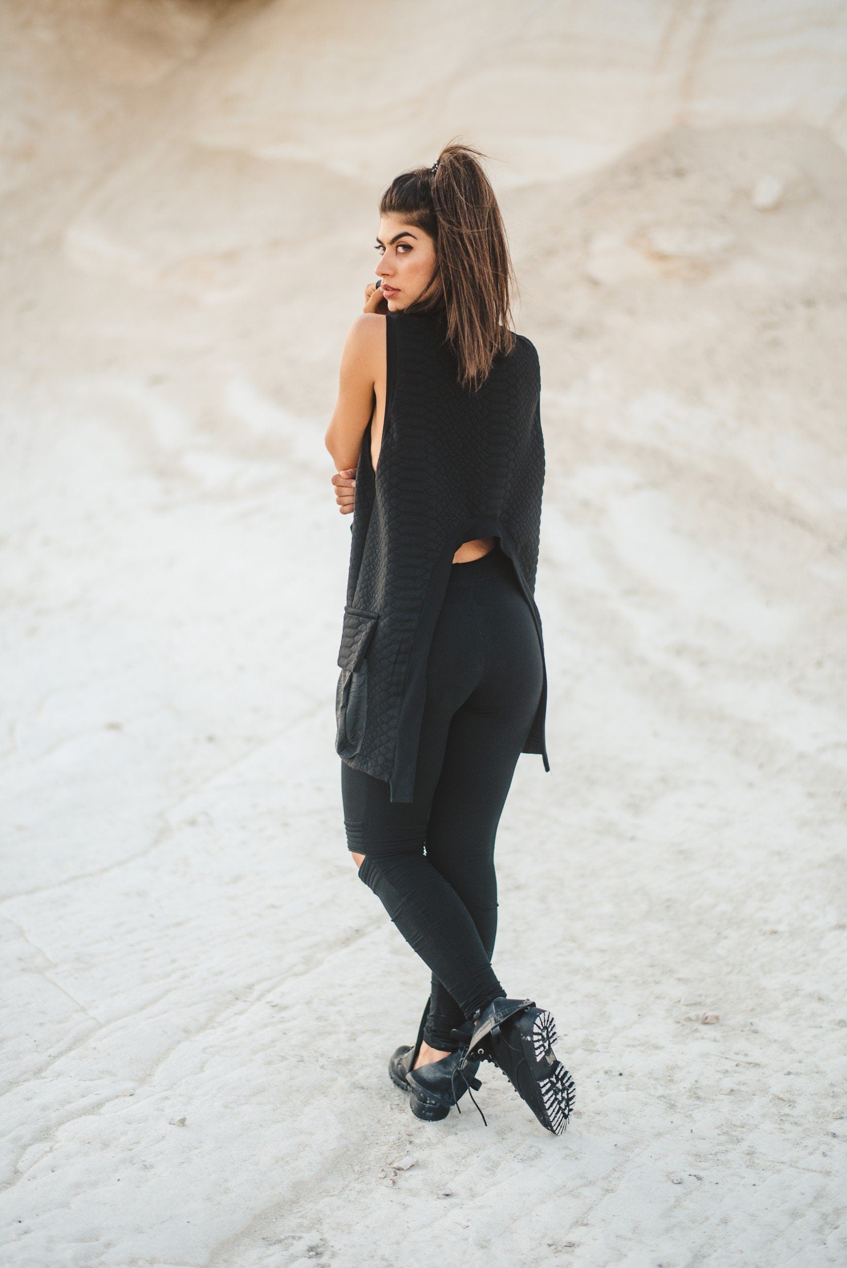 These fantastic leggings are the best seller in our shop !Made of heavy stretchy cotton , elastic waistband , zippers on both knees to adjust it to your style of preference , knees are padded and stitched to give that biker style that we love ! make them yours and ride on !